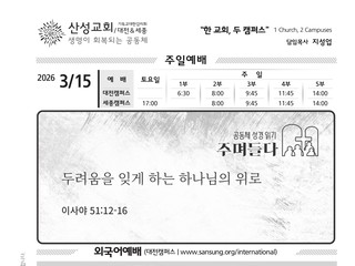 산성교회의 예배를 YOUTUBE에서도
